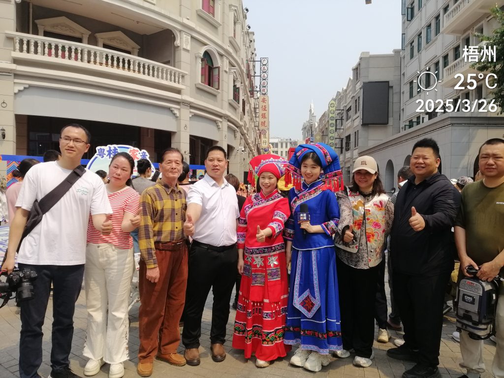 【中网广西梧州讯】3月26日,广西梧州万秀区”粤桂一家亲·情浓三月三”文旅消费嘉年华在骑楼城启动。梧州万秀区党委常委、宣传部部长欧广明,副部长覃祚干,关工委副主任、广西岭南泰伯六堡茶业有限公司党支部书记吴茂柏,梧州岭南骑楼城商业运营管理有限公司副总经理唐科等一起陪同,中央电视总台傅琦恩,杨雪,沈庆,农灿四位记者现场直播采访报道。
