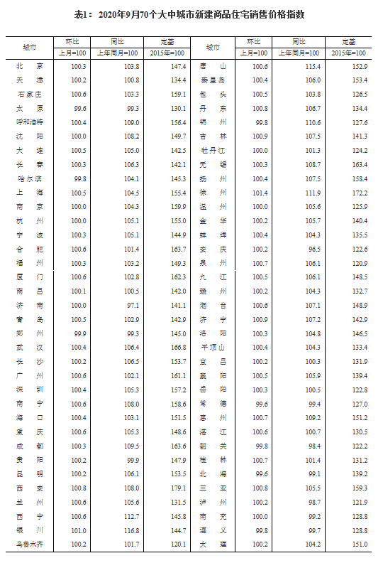中国网财经10月20日讯 据国家统计局网站消息,国家统计局今日发布9月份70个大中城市商品住宅销售价格变动情况,数据显示,9月共有55城新建商品住宅价格环比上涨,其中徐州涨幅1.4%领跑全国。