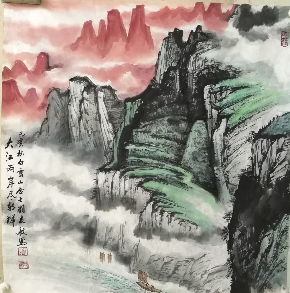 刘友敏为人谦和,治学严谨。每幅作品皆倾注心血、注入灵魂、精心创作,充满了极强的生命力!为追求艺术精益求精,他常常不辞劳苦、遍访名川大刹,用心触融大自然,用墨色美表达对祖国山河之爱,其一笔一画皆渲染着自己的情感。